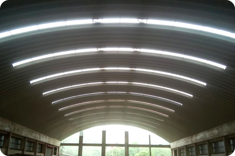How curved-shaped roofing solutions enhance energy efficiency, drawing from our expertise in self-supported steel roofs and arch shape roofing solutions?